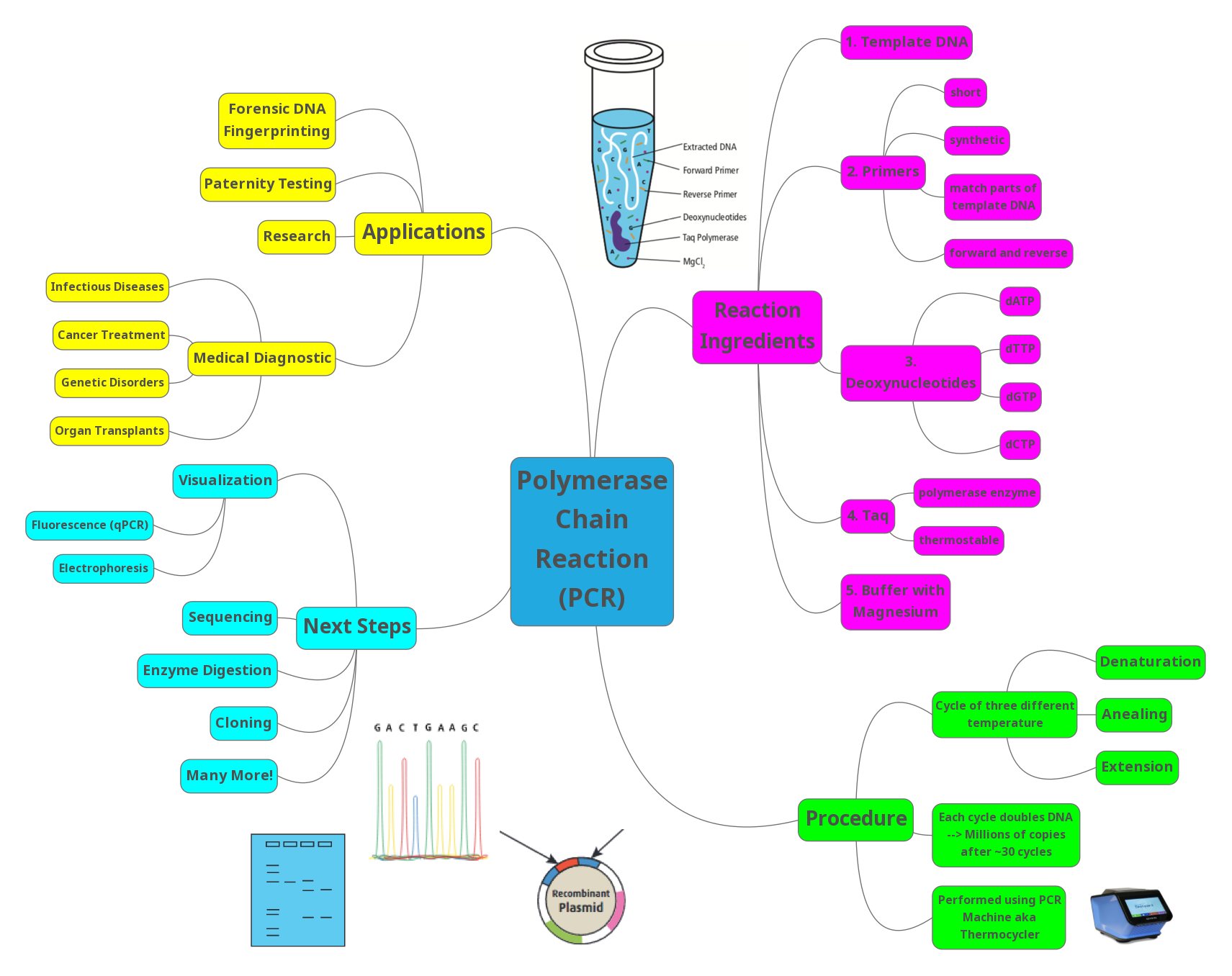 Thanksgiving is fast approaching. For many students and teachers, this also means that final exams are just around the corner. Mind maps are a simple but powerful tool that can help students learn and review. Here’s a brief introduction to this trending technique as well as an example mind map for PCR.