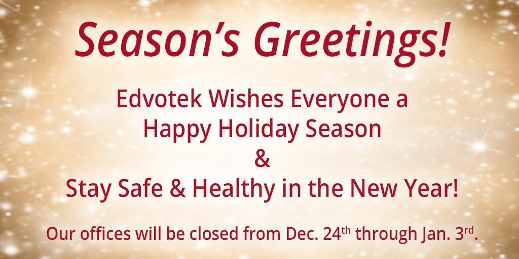 Edvotek will be closed from Dec 24th to Jan 3rd. We’re excited for some time to (safely) relax with our loved ones.