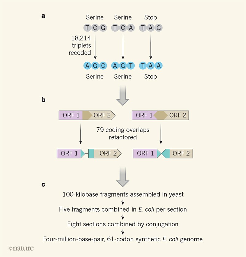 - Total synthesis of Escherichia coli with a recoded genome: