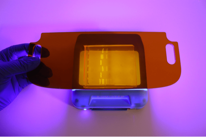 If you’ve prepared a gel using SYBR-Safe before, you are probably already aware that it is heat sensitive and has to be added to the molten agarose after it has cooled to around 60ºC. That being said, if you want to prepare gels that contain SYBR-Safe ahead of time, we recommend that you cast them in the gel trays so that once they solidify they do not need to be reheated. Then simply wrap or bag them up with a little bit of buffer! If you want your students to have the experience of pouring their own gels, you can dilute and add the SYBR-Safe in the bulk volume of agarose gel (as per the instructions in the Instructor Guide) and keep the gels in conical tubes or flasks in a 60ºC water bath so they remain molten. If you’re using a stain like FlashBlue, no need to worry about any of this since you’ll be staining the gels after the electrophoresis has finished.