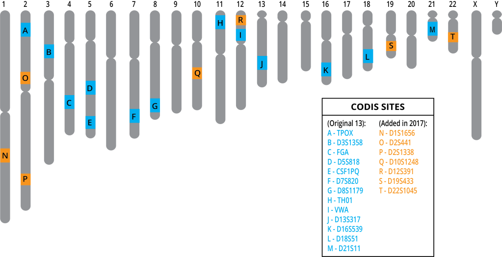 DNA profiles can be used to determine parentage, to discover missing people, and to identify potential suspects. In the United States, forensic scientists create DNA profiles using 20 specific loci within the human genome. These profiles are compared to profiles within the FBI database called the Combined DNA Index System, or CODIS. If there is a “hit”, or a perfect match, the information is provided to law enforcement.