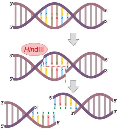 For example, the restriction enzyme Hind III cuts DNA with the sequence AAGCTT. Imagine there is a SNP in the restriction site at the second A, where this nucleotide can be an A or a T. Hind III can only cut when the DNA has an A in that location. If we digest the DNA with HindIII, and analyze it using agarose gel electrophoresis, we’d be able to identify the sequence of our sample at that location based on whether the enzyme cut or not.
