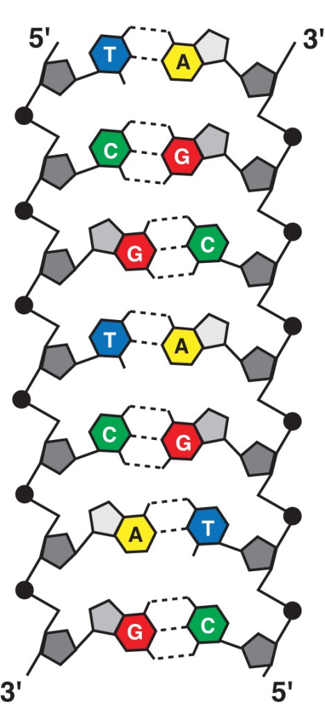 Deoxyribonucleic acid, or DNA is the genetic material found in living organisms from bacteria to plants to humans, and even some viruses. DNA is the blueprint used to build an organism. The directions coded for by our DNA controls everything from growth and development to cell specification, neuronal function, and metabolism.