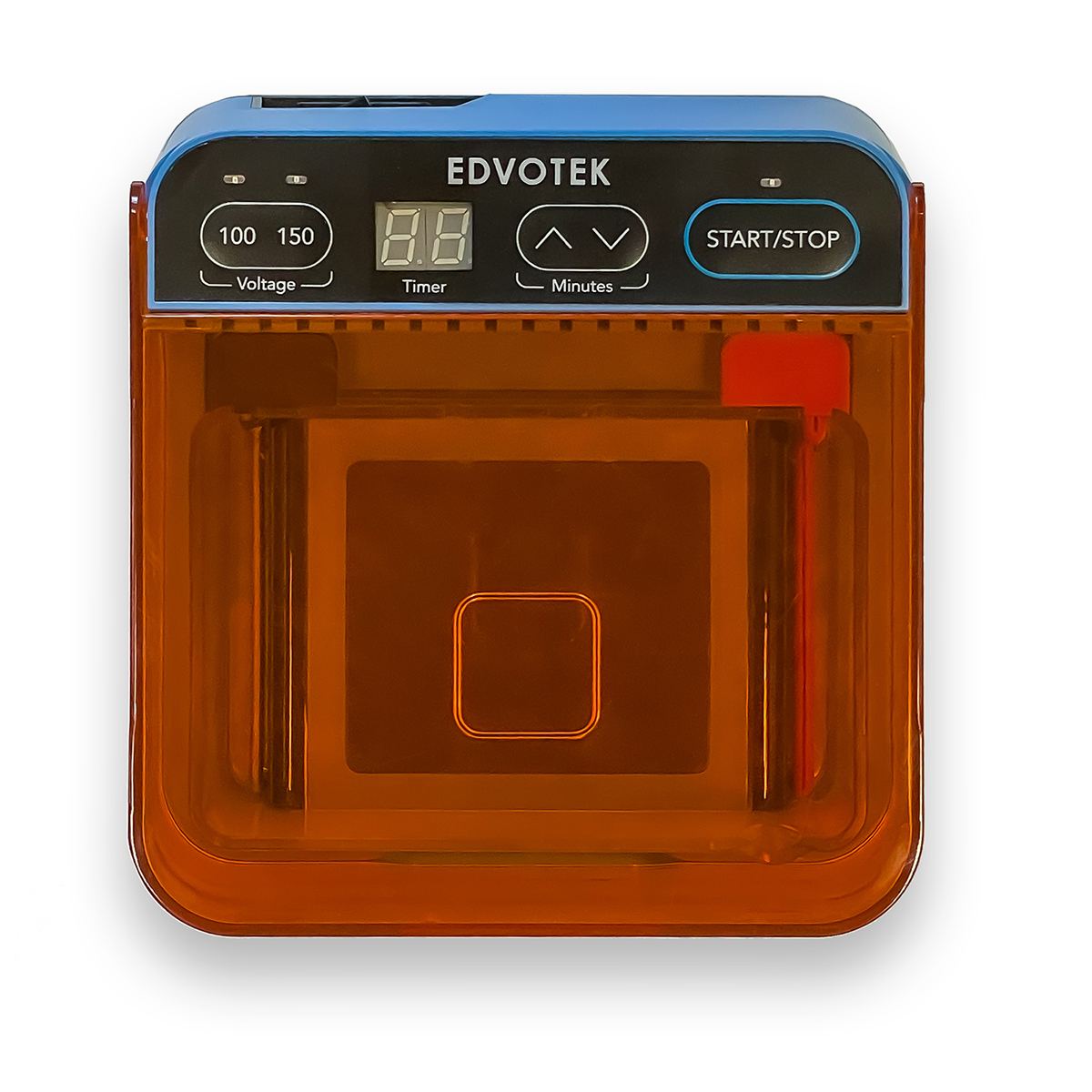 The EDGE™ Integrated Electrophoresis System revolutionizes biotechnology by merging an electrophoresis chamber, power supply and blue light into a single, safe and easy-to-use apparatus. It runs a 10 x 7 cm gel in less than 10 minutes with crisp band resolution while enabling real-time visualization of DNA migration. And all EDVOTEK® and PLTW® electrophoresis experiments may be run without protocol adjustments. Bring the EDGE™ to your laboratory for the ultimate in convenience, performance and results.