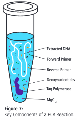 Alone and heartbroken the single-stranded template DNA strands wandered through the TE buffer. First, they met tiny little molecules called MgCl2 that flew to their shoulder and sang beautiful songs. Then they met a group of nucleotides, sweet sugar molecules attached to a phosphate group and a nitrogen-containing base. The nucleotides, who called themselves dNTPS, listened to template DNA’s tragic story and wanted to help so they took them to the primers.