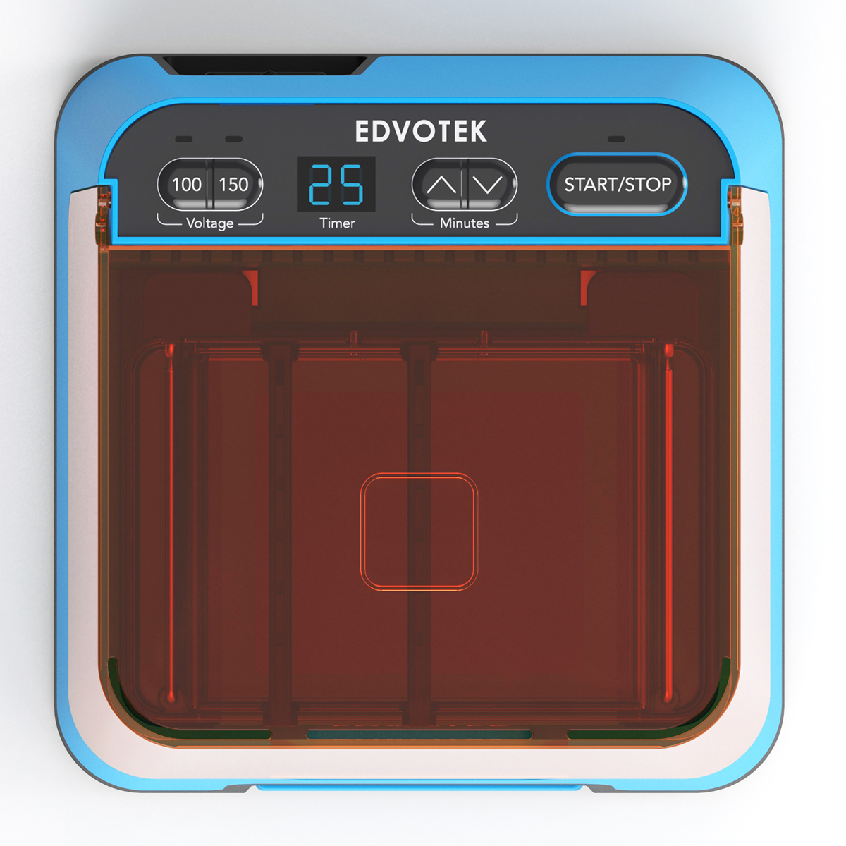 The EDGE™ Integrated Electrophoresis System revolutionizes biotechnology by merging an electrophoresis chamber, power supply and blue light into a single, safe and easy-to-use apparatus. It runs a 10 x 7 cm gel in less than 20 minutes with crisp band resolution while enabling real-time visualization of DNA migration. And all EDVOTEK® and PLTW® electrophoresis experiments may be run without protocol adjustments. Bring the EDGE™ to your laboratory for the ultimate in convenience, performance and results.