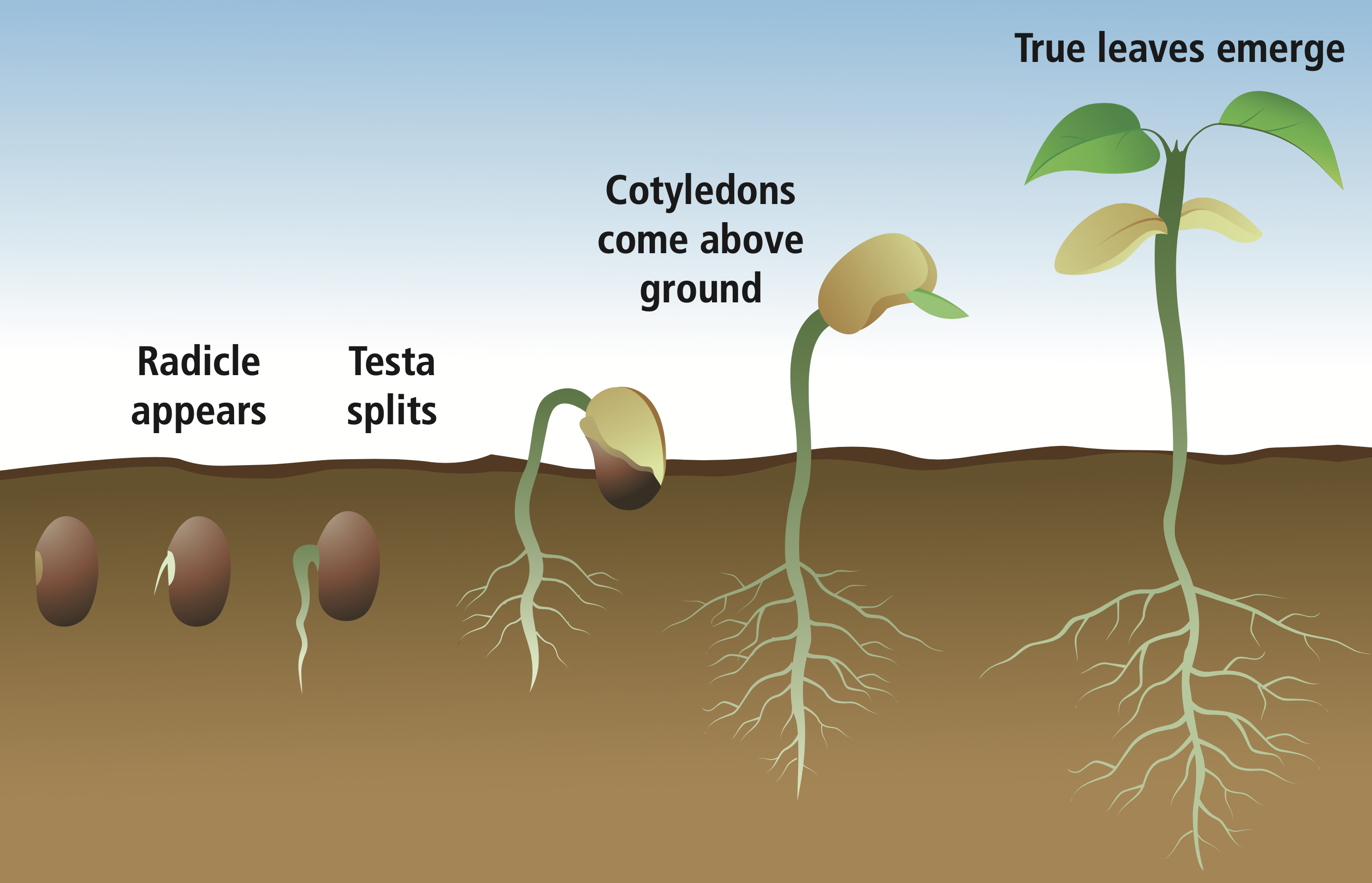 Seeds contain the embryo and food source needed to enable new plants to grow and survive. Germination is the first process of plant growth when a seed begins to sprout roots. Seeds will begin to germinate when they have absorbed water, causing the seed to swell and sprout its first root (known as the radicle). As roots sprout from a seed they can then absorb nutrients from the soil and continue growing into a full plant. Seed germination is dependent on temperature, water absorption, oxygen availability, and exposure to sunlight. While these vary between seeds from different plants, we have outlined a short experiment which will work to germinate a variety of seeds.