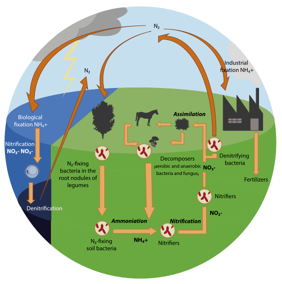 Nitrogen fixation is a critical ecological process that ensures living organisms get an essential nutrient. Unfortunately, there are only a few ways to accomplish it. Lightning has the energy to convert atmospheric nitrogen, N₂, into a usable form like nitrates. A handful of organisms contain the enzyme nitrogenase, which can break apart and convert N₂. These include symbiotic bacteria like Rhizobium and Actinobacteria, cyanobacteria, and a few free-living species of archaea and bacteria. Finally, we developed the Haber-Bosch process in the early 20th century—an industrial method for producing ammonia for fertilizers—and it remains a cornerstone of modern agriculture.
