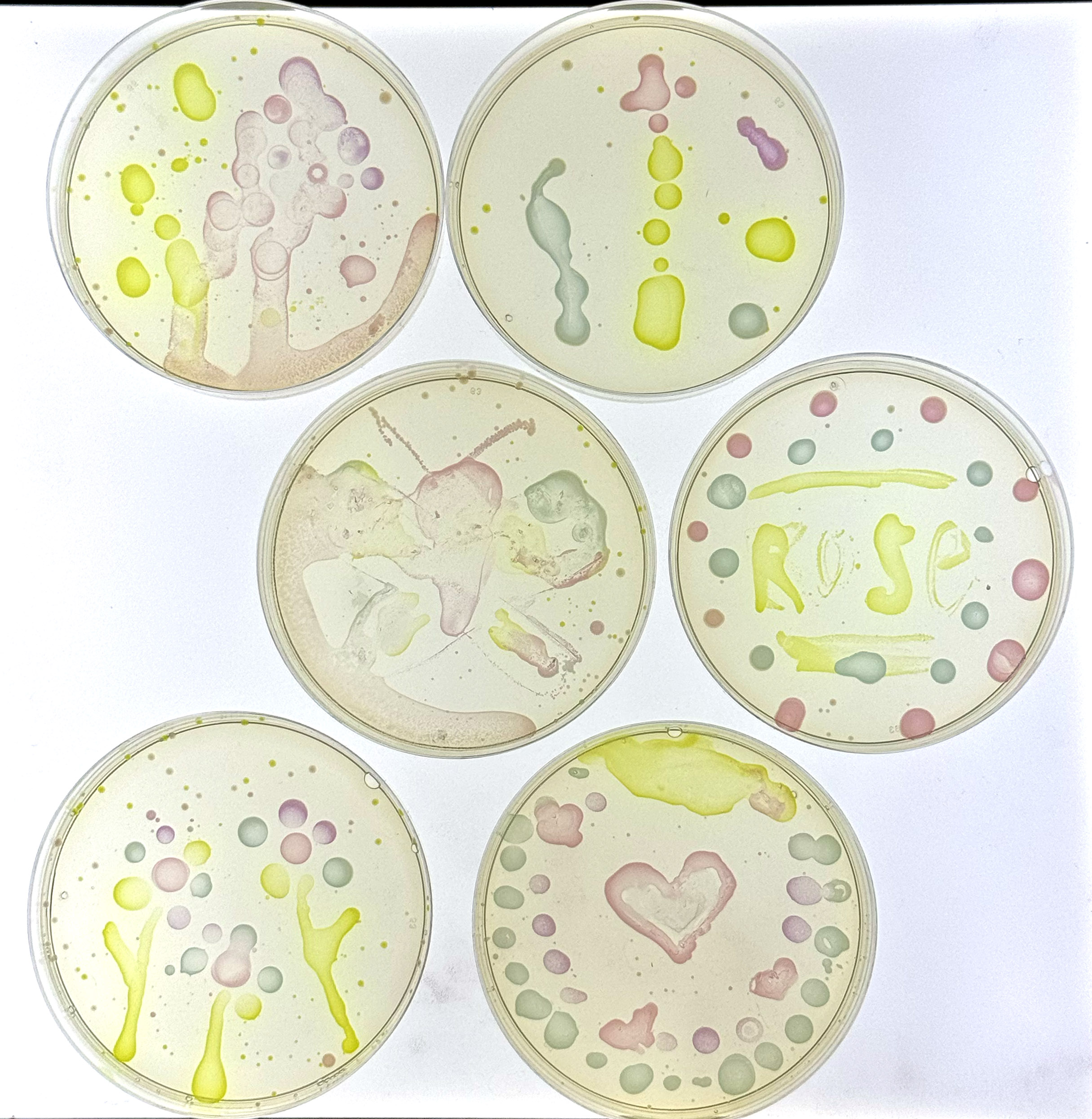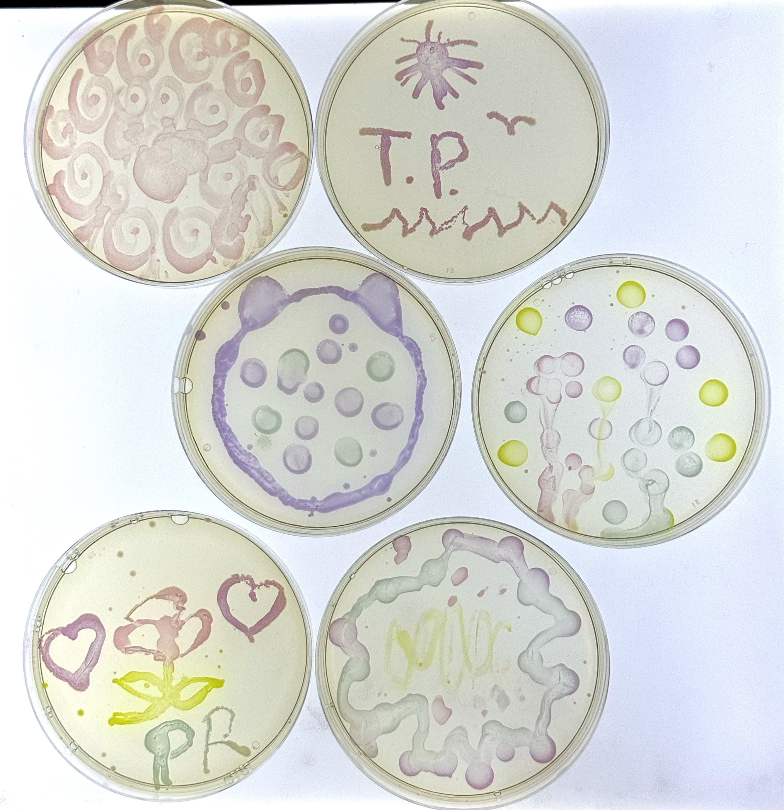 Today I wanted to post just one set of results that are too much fun not to share. One of our Friday workshops, Color Your Classroom: Engaging Students with Bacteria and Bio-Art, explored ways that instructors can use bacteria to bring some art into the classroom. Teachers learned some tips and tricks to get the best transformation results with their students. Next, they used transformed bacteria as a biological paint and unleashed their creativity on LB Agar plates! The bacteria express proteins that are blue, pink, purple, and green, producing a beautiful color as they grow. Check out our participant’s results below!