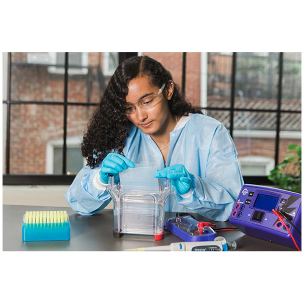 Edvotek’s Lypho-Proteins Lypho-templates, Lypho-primers, and PCR EdvoBeads are pre-formulated with chemicals that make the samples more dense than water, and built in tracking dyes. This saves you the time of adding the loading dye, plus you don’t have to keep track of another component!